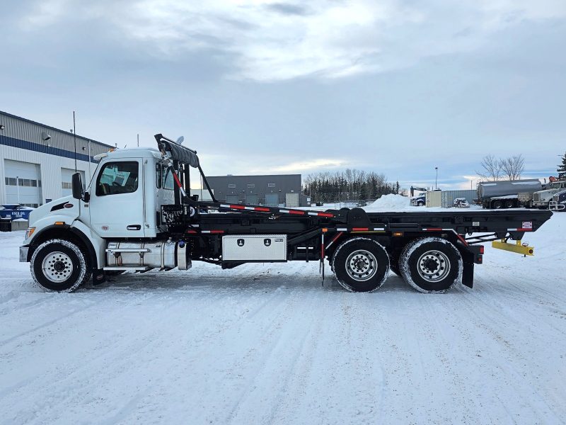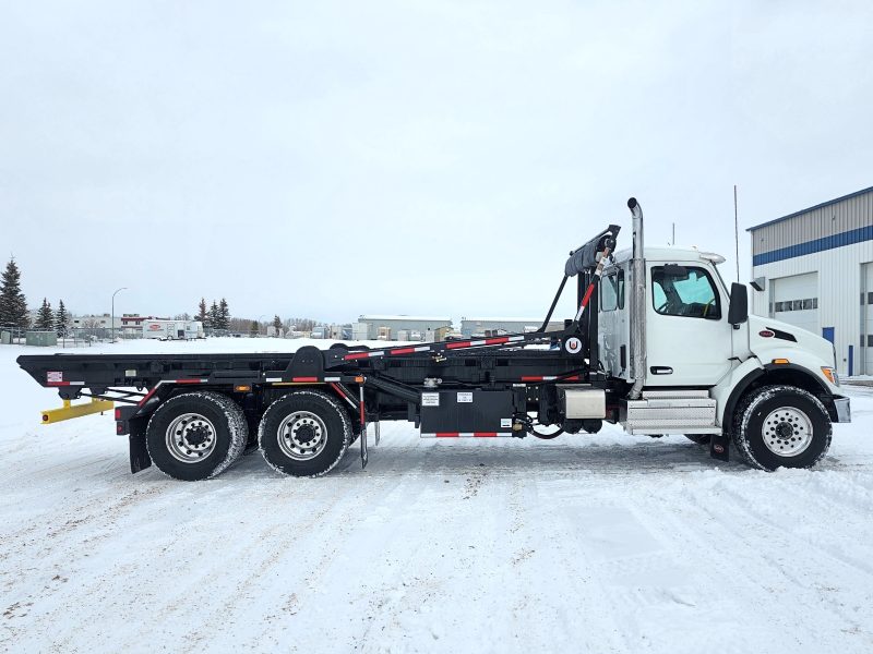 This Peterbilt 548 is engineered for performance, durability, and operator comfort. With its powerful PACCAR PX-9 engine, Allison automatic transmission, and robust roll-off hoist system, this truck is ready to tackle the toughest jobs with ease.
