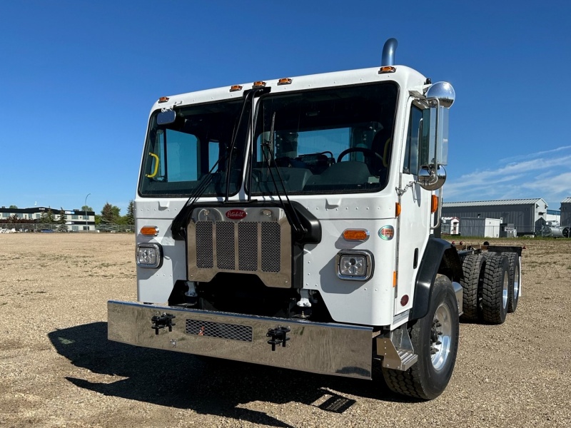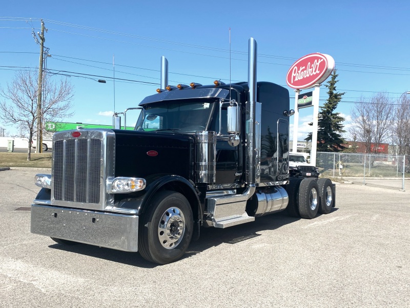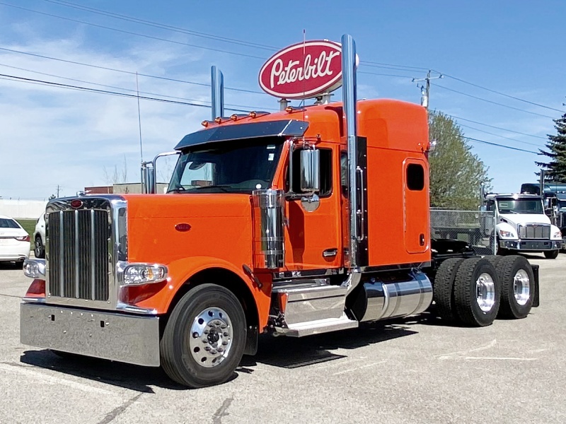 The wide aluminum cab does more than provide more cabin space, it features stair-style steps, a one-piece windshield and sloped hood, and redesigned side mirrors with large, heated mirror surfaces. Peterbilt’s signature, pod-mounted headlamps are durable, corrosion-resistant and simple to replace.